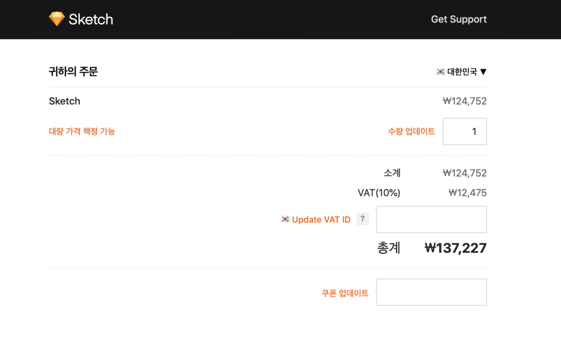 스케치 앱 공식 홈페이지 하단에 get a license버튼을 클릭하여
