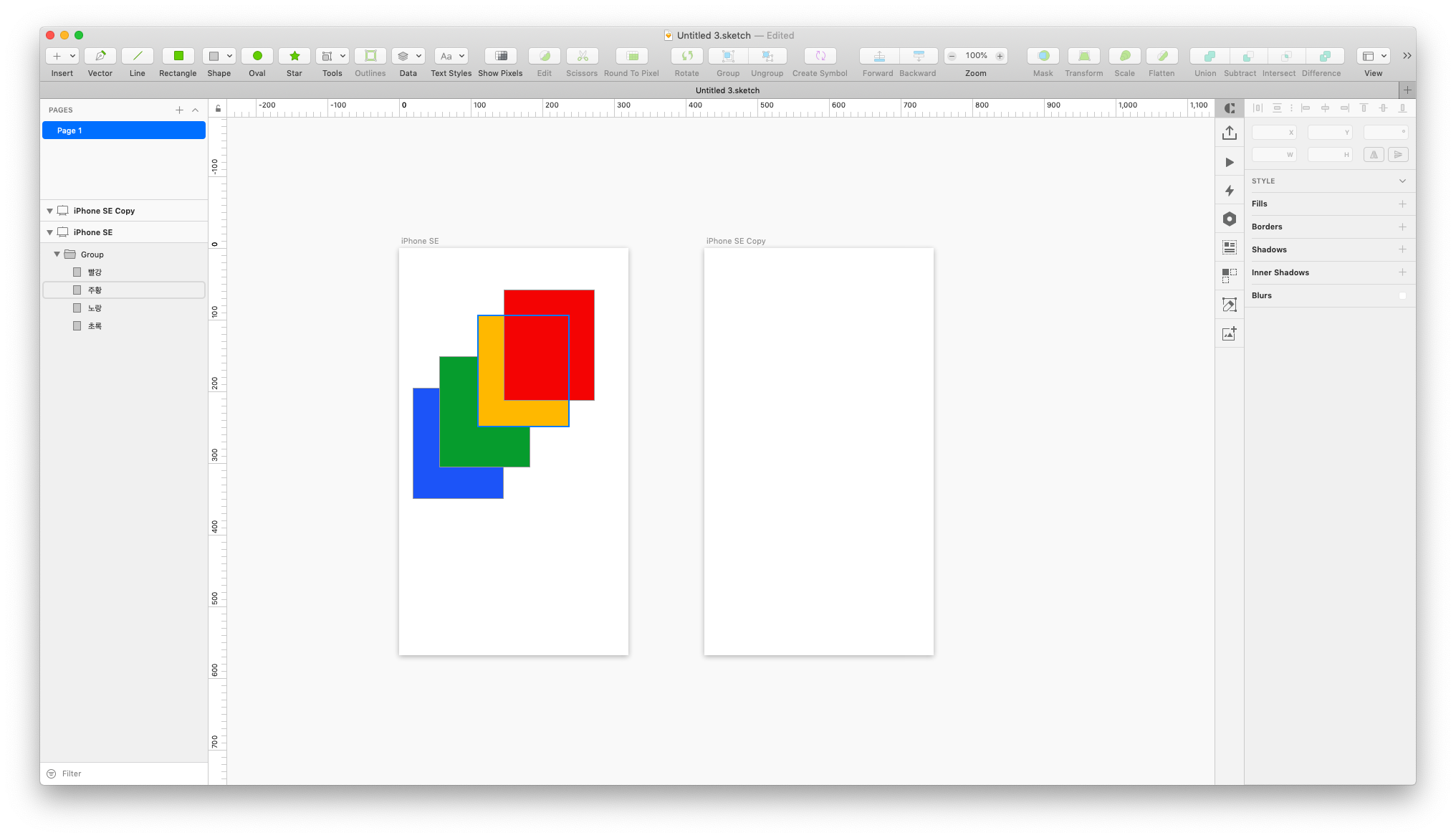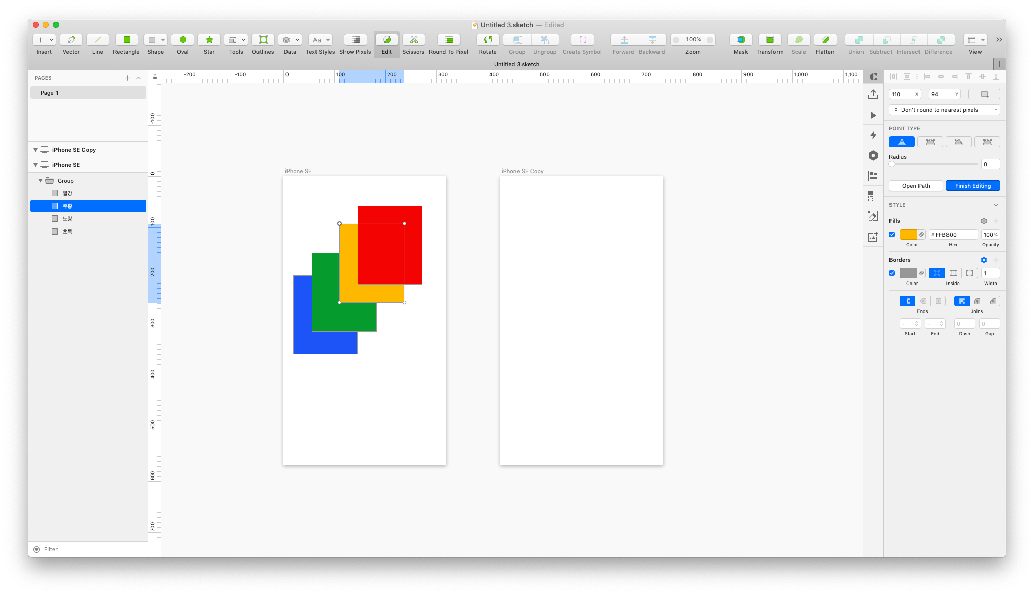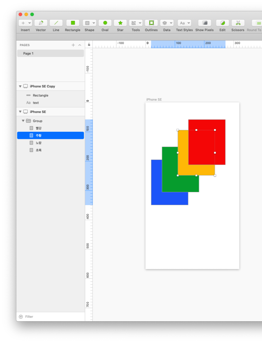 이런방법으로 아트보드안에 도형을 비롯한 컴포넌트들을 ctrl+c를 눌러 복사하고 붙이고자 하는 아트보드를 선택하고